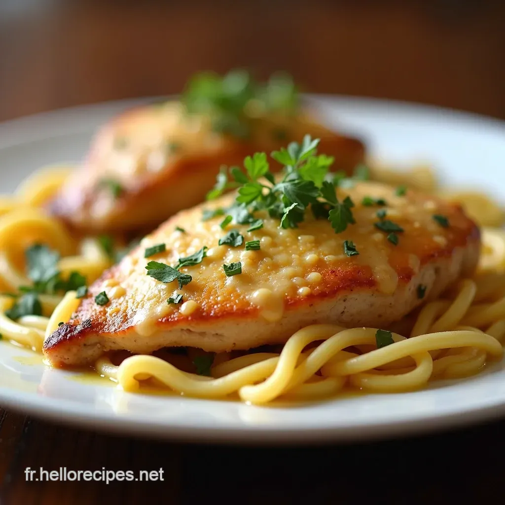 Le Poulet Parmesan au Four , c'est déjà une tuerie en soi, mais la présentation, ça compte aussi, tu vois ? Dispose tes escalopes sur un lit de spaghettis bien nappés de sauce tomate maison.