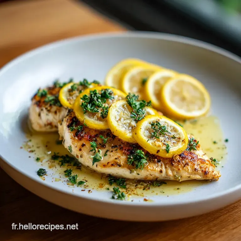 Dispose les tranches en éventail et nappe généreusement avec la sauce au citron et à l'ail restée dans la poêle. Le contraste entre le blanc nacré de la viande, le doré de la croûte et le vert vif du persil frais est irrésistible. Accompagne le tout d'un riz basmati vapeur ou de quelques légumes verts croquants. C'est simple, c'est beau, et surtout, c'est incroyablement bon. Pour une approche encore plus équilibrée, n'hésite pas à consulter ce Plat Sain et recette qui propose des accompagnements végétaux parfaits pour compléter ce repas.