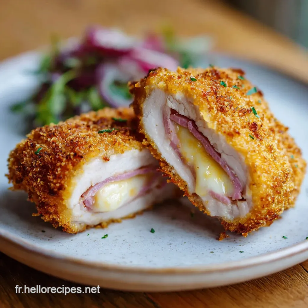 Pour doubler la recette, ne double pas bêtement le sel, car le jambon et le fromage sont déjà très chargés en sodium. Travaille par fournées : fais dorer les cordons bleus à la poêle, puis garde les au chaud dans un four à 100°C (212°F) sur une grille. Cela évite que la panure ne ramollisse au contact d'une assiette froide. C'est une technique que j'utilise souvent, un peu comme pour La Vraie Blanquette recette où le maintien en température est crucial pour le service.